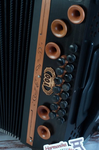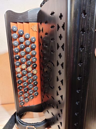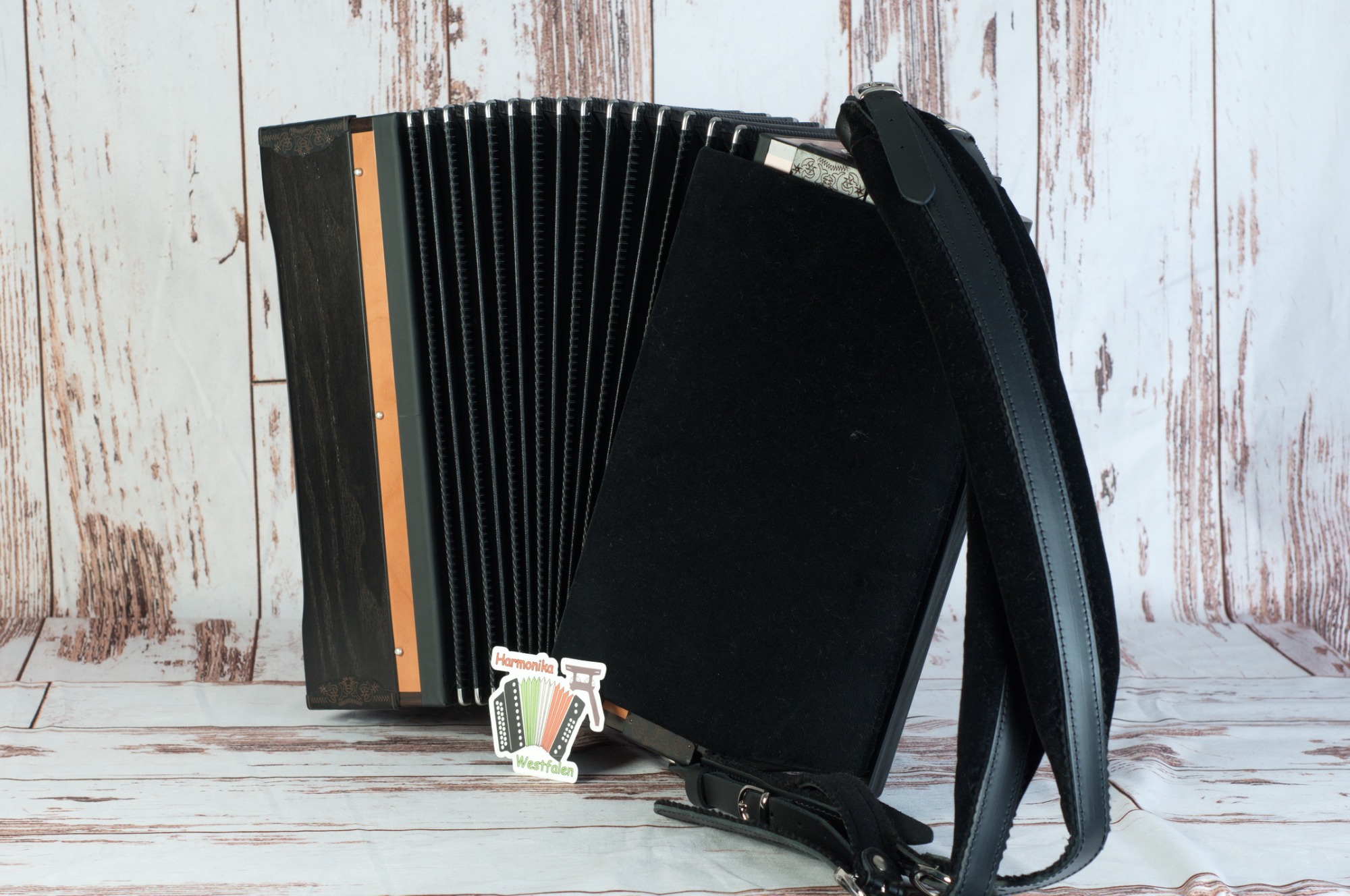 - Professionelle Ausstattung: 4-reihig, 3-chörig, 48 Diskantknöpfe, 16 Bassknöpfe (inkl. X- und H-Bass), 2 Halbtöne, 2 Mollbässe auf Zug.