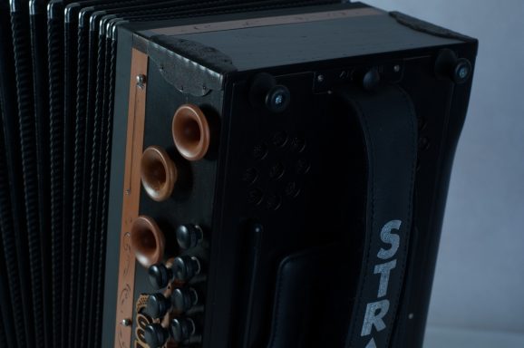 Die Strasser Hoamat Harmonika beinhaltet die Michelbauer Vollausstattung inkl. X- Bass und H- Bass, 2 Mollbässe auf Zug.